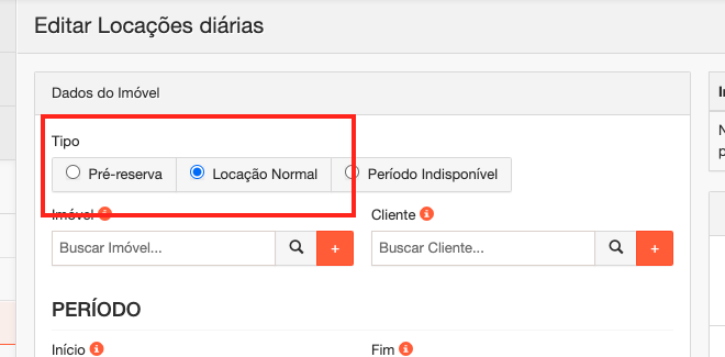 O tipo pré-reserva era indicado quando o cliente ainda não confirmou a locação, e você gostaria de deixar o imóvel reservado. E o tipo locação normal, era utilizada quando a locação já estava confirmada.