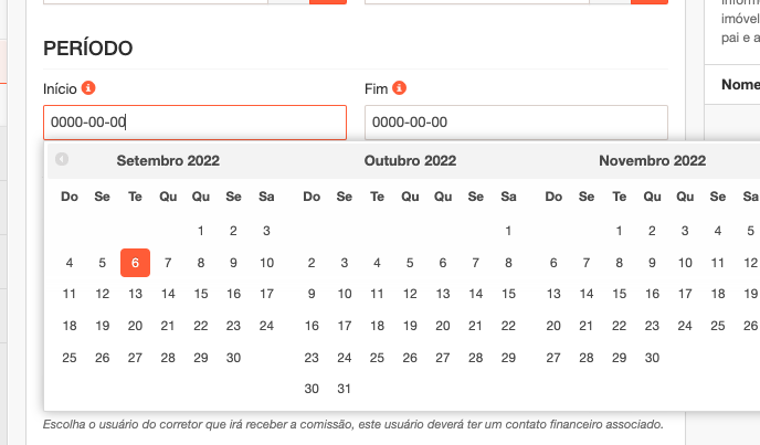 O calendário com a disponibilidade do imóvel era exibido apenas quando o campo Início ou Fim estivesse sendo preenchido:
