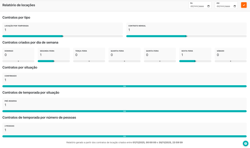 - Novo relatório de locações mensais e de temporada, facilitando a visão de desempenho por período.