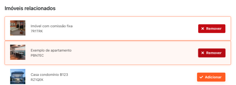 Para isso, na lista de imóveis clique em Adicionar, e selecione os imóveis desejados.