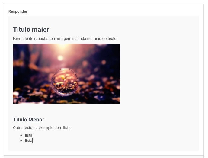 O sistema permite que você formate o texto conforme necessidade, além disso, permite que você insira imagens no corpo do texto.