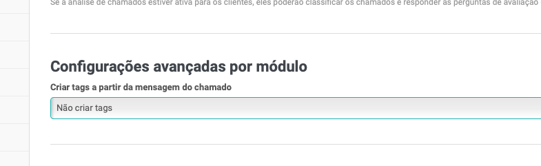 No item Configurações avançadas por módulo, selecione a opção Não criar tags, conforme a imagem abaixo: