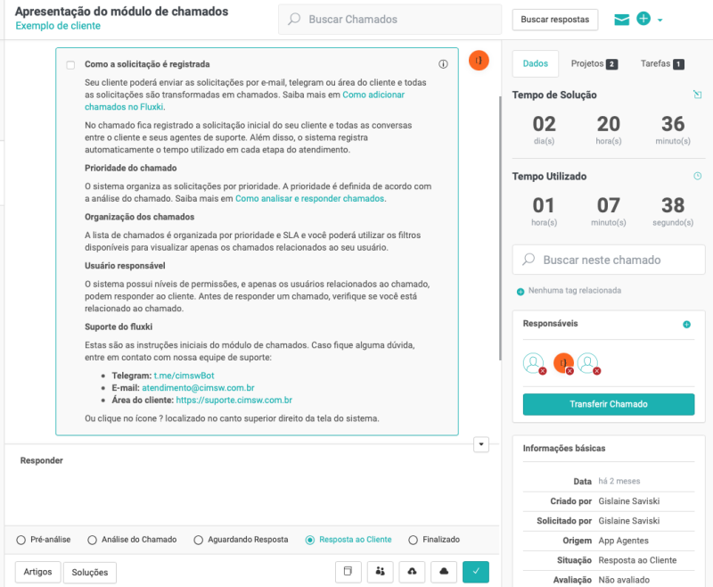 Se ficou alguma dúvida sobre como analisar e responder os chamados no Fluxki, por favor abra um chamado :)