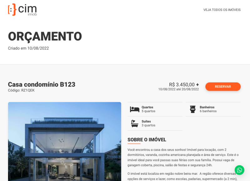 Uma página, com todos os detalhes dos imóveis, é gerada para cada oferta cadastrada no Cim Imob.