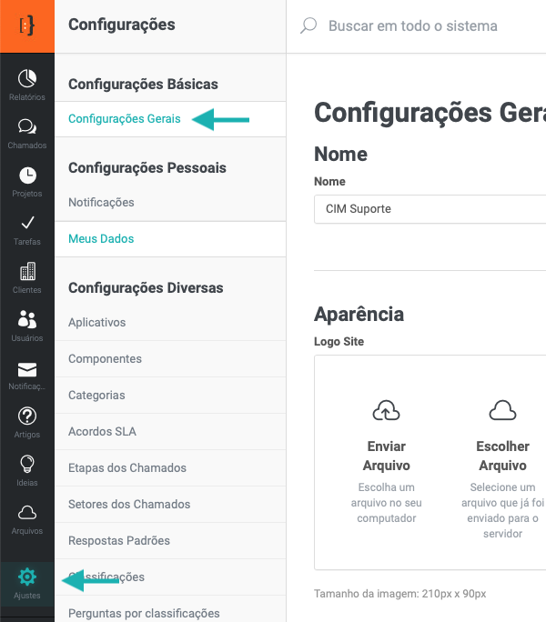 Com o CIM Suporte você poderá configurar o e-mail padrão do sistema, que será usado para receber chamados via e-mail.