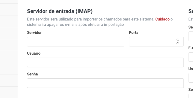 Informe os dados da sua conta de e-mail. Lembre-se de utilizar uma conta exclusiva para o sistema, pois após importar as mensagens, os e-mail são apagados da sua caixa de entrada.