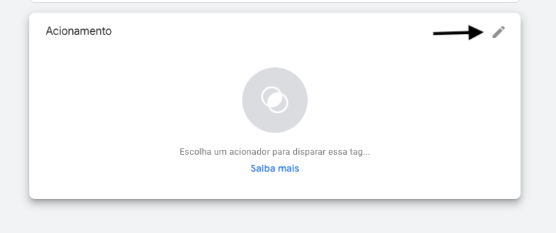O próximo passo é selecionar o Acionamento. Clique no ícone de editar: