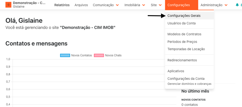 Para acessar as confogurações de cores, no menu principal clique em Configurações > Configurações gerais: