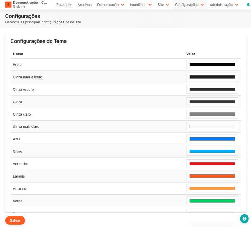 Se ficar alguma dúvida sobre o editor de cores do Cim Imob 3.0, entre em contato com nossa equipe de suporte.