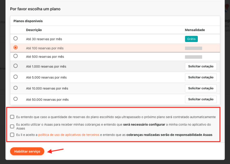 Atenção: É necessário que o Asaas esteja configurado no sistema para que a reserva seja finalizada.