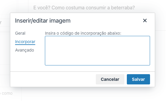 Você poderá incorporar vídeos do YouTube, Vimeo ou Facebook.