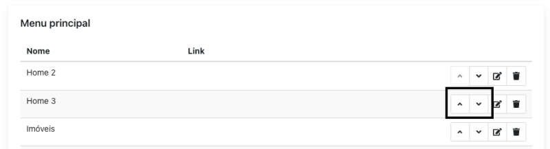 Você também poderá editar a posição dos itens do menu, clicando nas setas para mover: