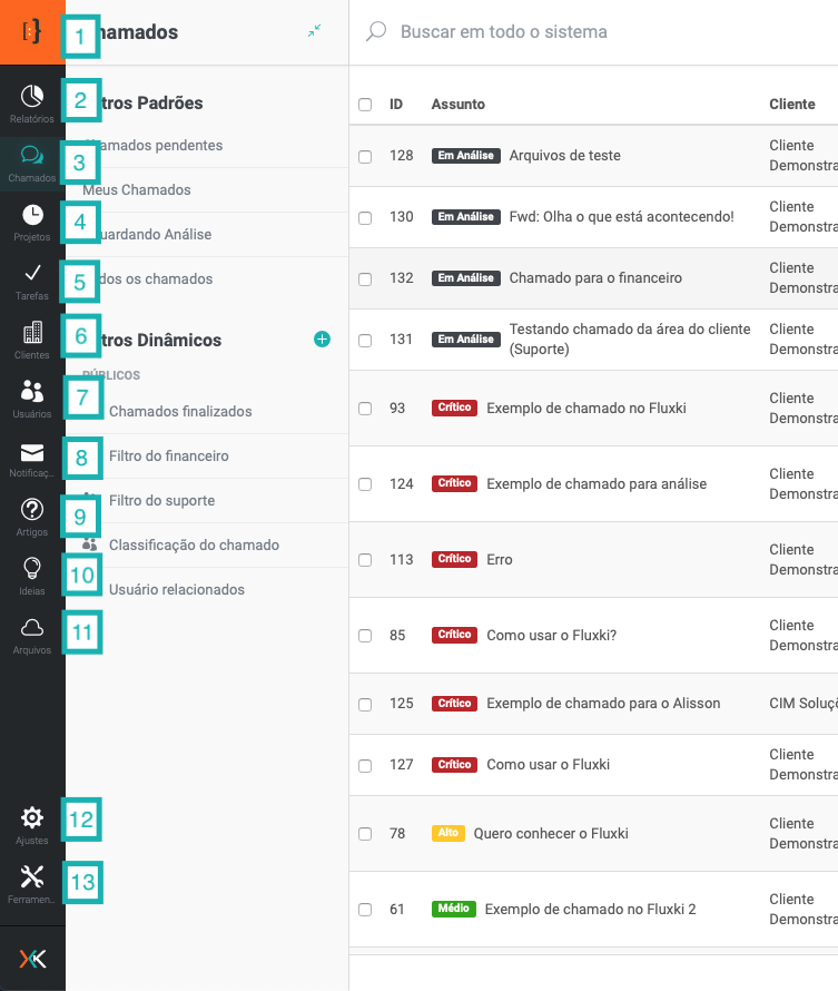 Para uma visão geral dos principais módulos do Fluxki, veja o artigo Módulos do Fluxki.