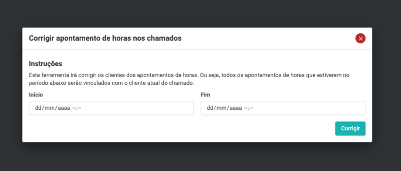 Com a ferramenta, todos os registros de apontamentos serão corrigidos, conforme o cliente do chamado.