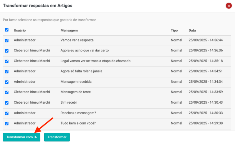 Foi corrigido o problema que afetava a transformação de respostas em artigo da base de conhecimento, aumentando a estabilidade do fluxo e reduzindo falhas na publicação.