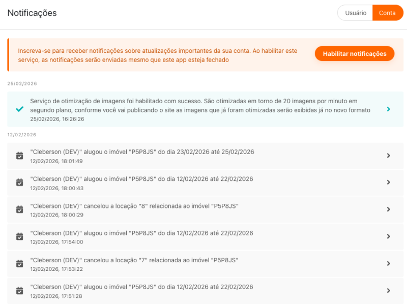 Ativamos as Notificações Push para conta/site e passamos a salvar com segurança o token do usuário, garantindo o recebimento confiável dos alertas.