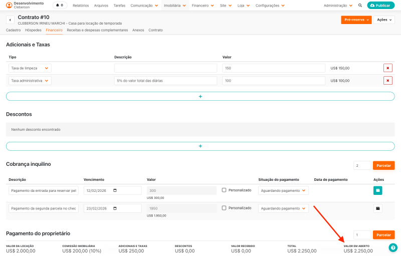 Valor em aberto do contrato