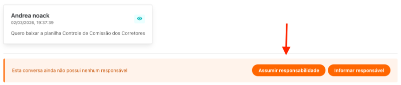 Incluímos um botão para assumir a responsabilidade pela conversa quando não há um responsável definido, acelerando o atendimento.