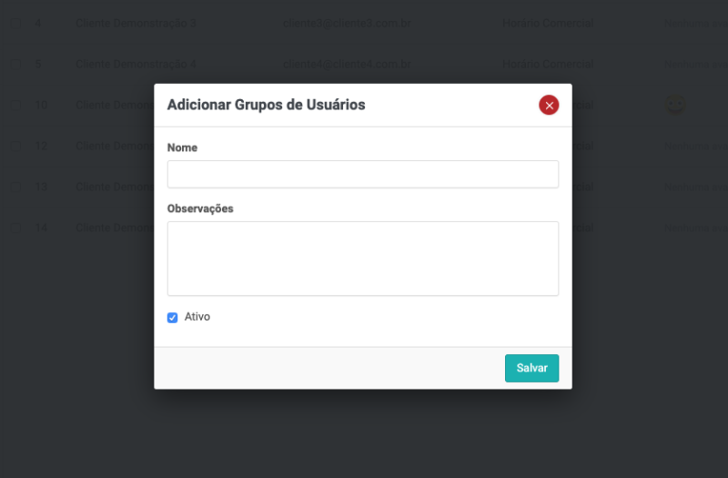 O processo para adicionar um grupo de usuário é igual ao grupo de clientes.