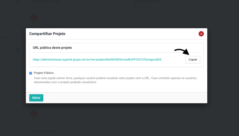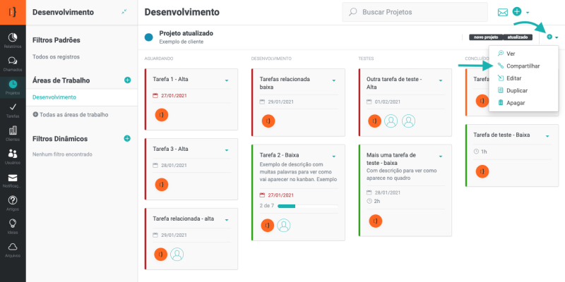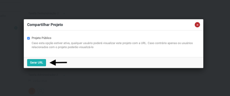 Essa funcionalidade permite, por exemplo, que o cliente possa acompanhar o andamento do projeto, através de um link público.