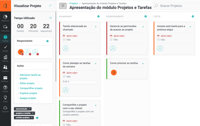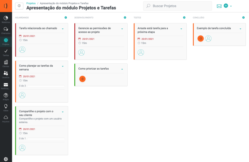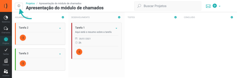 Agora, vamos aprender como trabalhar nos projetos, adicionar novas tarefas, relacionar usuários, criar check-list entre outras funcionalidades do módulo.