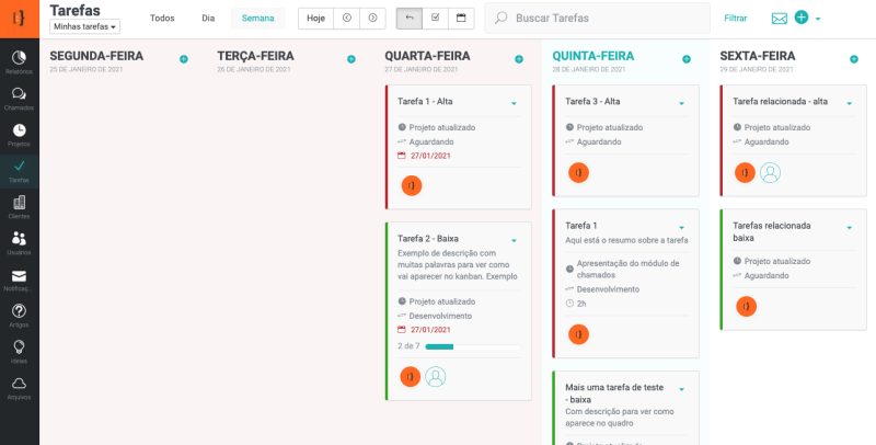 Com o calendário das tarefas você conseguirá organizar e planejar a semana, definindo as tarefas que serão executadas e acompanhar as tarefas atrasadas.