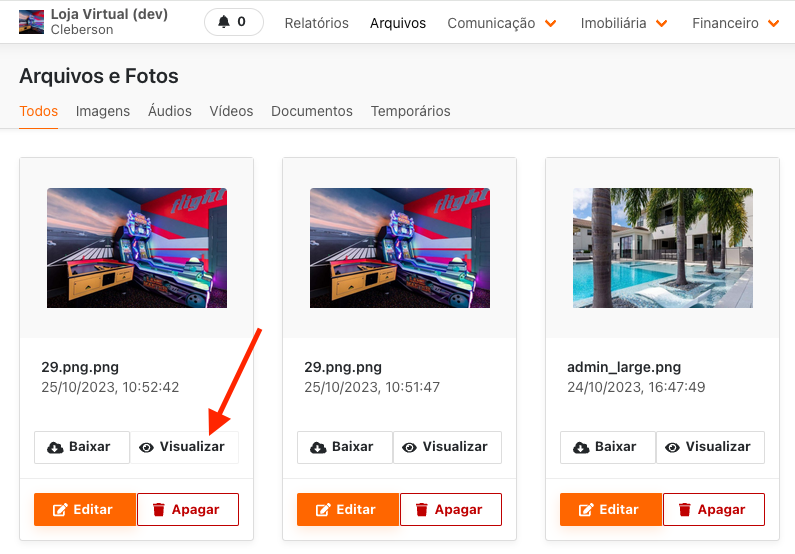 Agora é possível visualizar os arquivos sem precisar baixar, basta clicar no botão com o formato de um olho para abrir o arquivo.