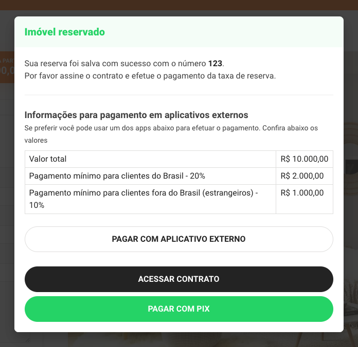 Agora é possível cadastrar aplicativos de terceiros para receber o pagamento da reserva. Esses aplicativos são usados principalmente para clientes de fora do Brasil, onde o PIX não é utilizado.