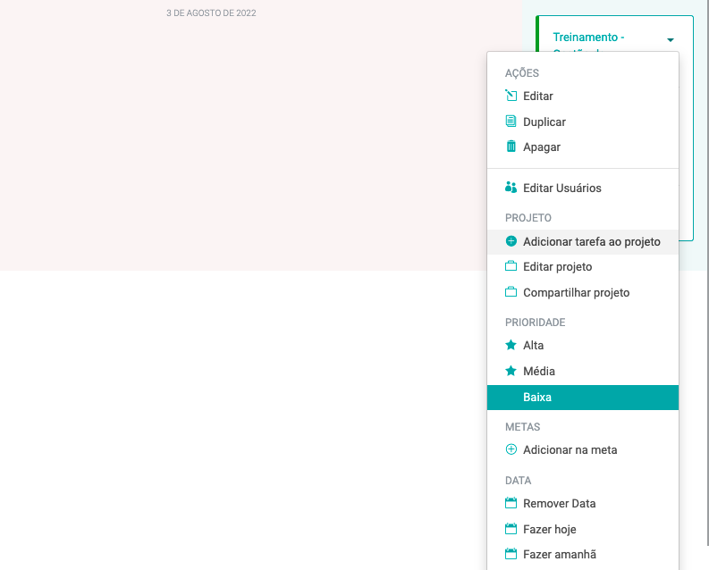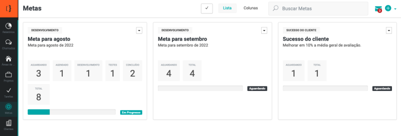 Diferente da área de trabalho, onde o projeto e todas as suas tarefas são relacionadas, na meta você poderá relacionar tarefas de diversos projetos.