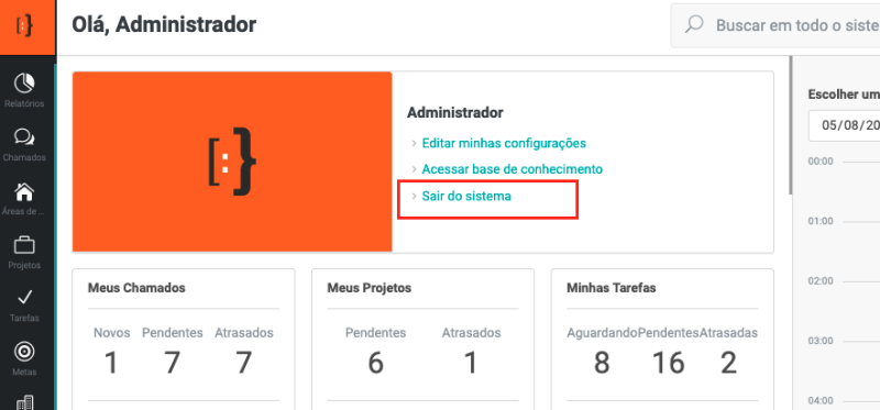 Agora o botão fica visível no Dashboard do usuário, assim como os atalhos para editar as configurações do usuário e acessar a base de conhecimento.