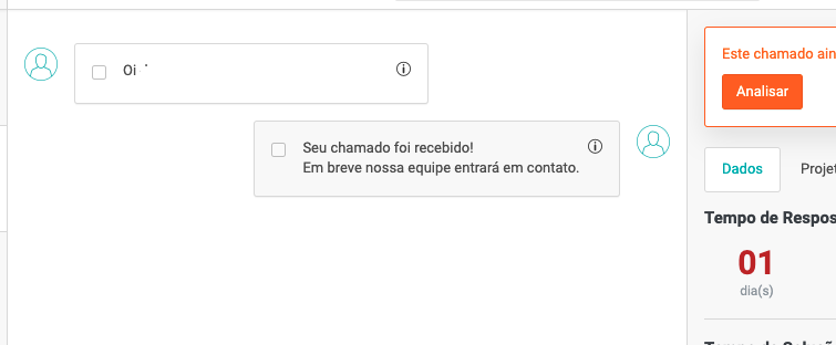 Quando o chamado está em aberto por mais de 24 horas e o cliente enviar uma nova mensagem, uma nova janela de 24 horas será adicionada ao chamado, permitindo o envio de mensagens ao cliente.