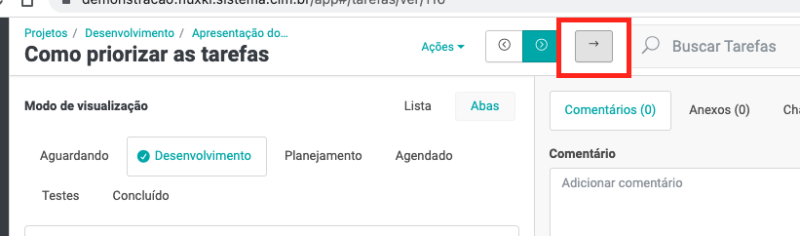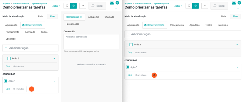 Outra novidade é a possibilidade de ocultar a barra lateral (Comentários / Anexos / Chamados):