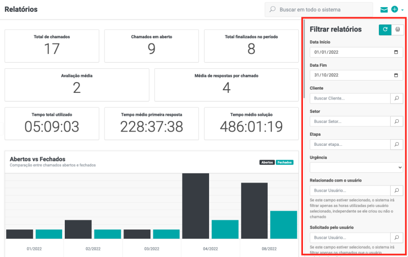 Novo formato de filtro no relatório Chamados > Resumo Geral: