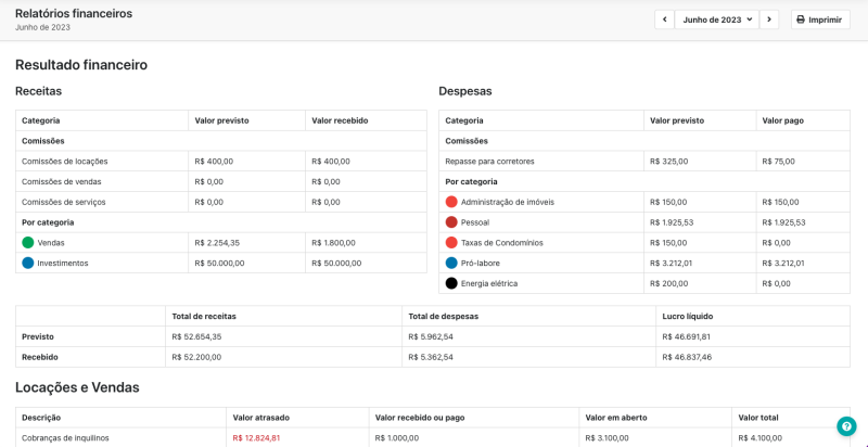 Com este relatório você poderá acompanhar as receitas e despesas de cada categoria do Financeiro, e acompanhar o resultado final do período.