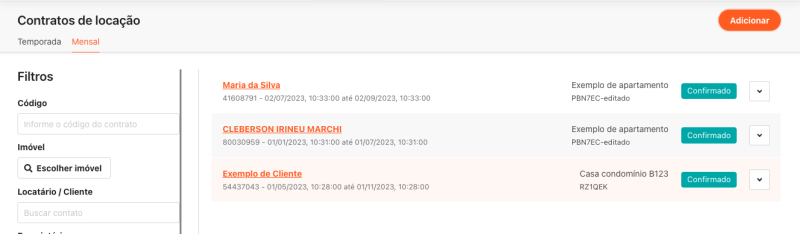 Na tela de visualização do contato é possível visualizar todos os contratos de locações relacionados à ele.